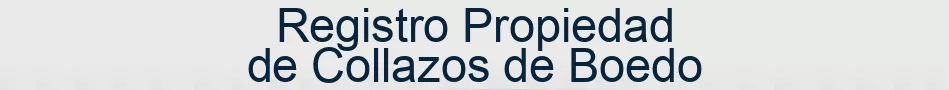 El Municipio de Collazos de Boedo no dispone de Registro de la Propiedad propio. El Registro de la Propiedad de Collazos de Boedo, es decir, el Registro de la Propiedad en el que se inscriben las casas, pisos o fincas ubicados en Collazos de Boedo es el siguiente: Ronda Don García, 13 34100 - Saldaña (PALENCIA)