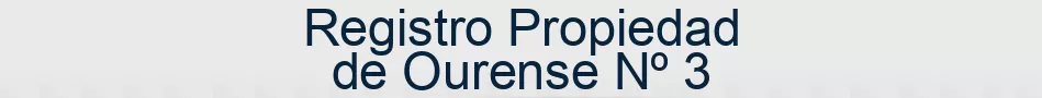 El Registro Propiedad Ourense Nº 3 es un organismo público que tiene por función la inscripción o anotación de los contratos y cambios relativos al dominio y demás derechos reales sobre bienes inmuebles correspondientes a su demarcación. El Registro de la Propiedad Ourense Nº 3 es dependiente directamente del Ministerio de Justicia.