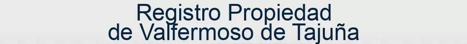 El Municipio de Valfermoso de Tajuña no dispone de Registro de la Propiedad propio. El Registro de la Propiedad de Valfermoso de Tajuña, es decir, el Registro de la Propiedad en el que se inscriben las casas, pisos o fincas ubicados en Valfermoso de Tajuña es el siguiente: Avda. de la Constitución, 51 BRIHUEGA GUADALAJARA 19400 19400 - Brihuega (GUADALAJARA)